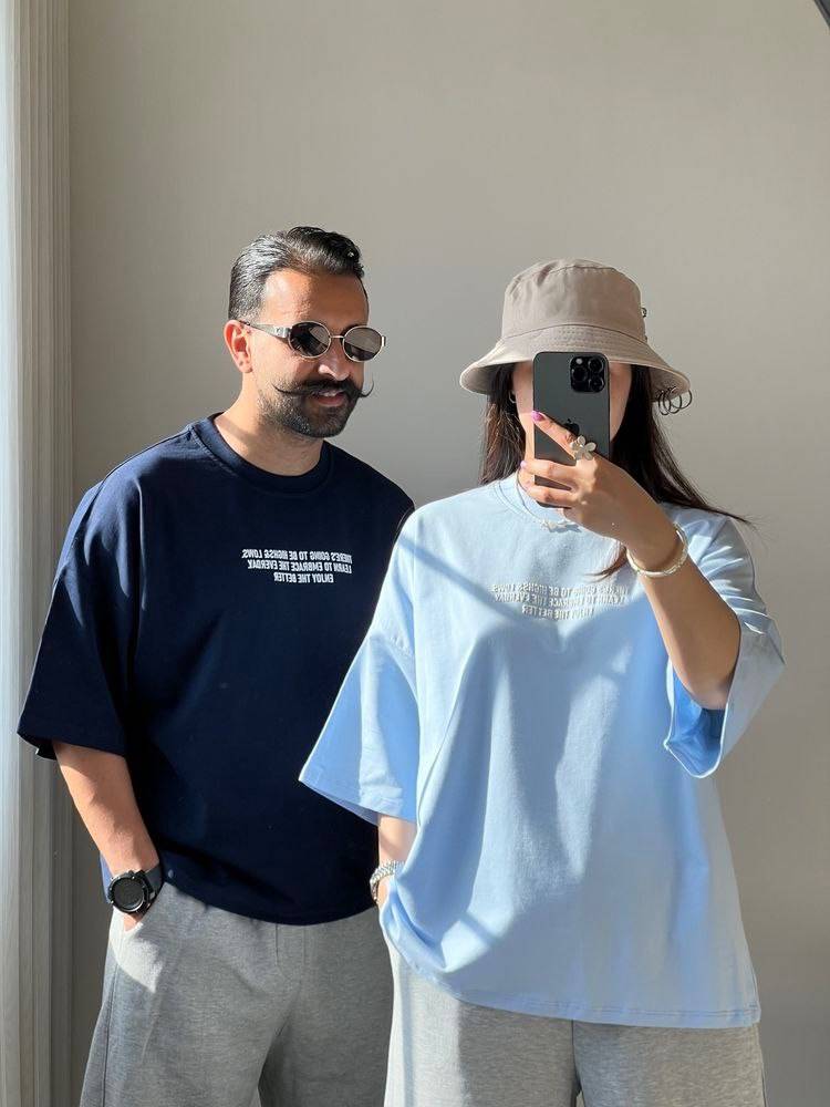 تیشرت باکسی کاپلی زنانه مردانه جنس پنبه سوپر نخ 28